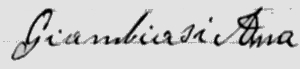 DOMENICA LAZZARELLI (Arrière-grand-mère de Giovanni). Elle est décédée avant 1874 à Montereggio, Provincia di Massa-Carrara, Tuscany, ITALY. |